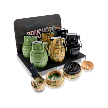 CRUSHERS 4-PIECE GRENADE W/PIPE METAL HERB GRINDER 6CT/DISPLAY