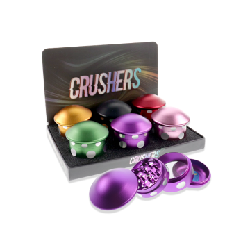 CRUSHERS 4-PIECE 55MM MUSHROOM METAL HERB GRINDER 6CT/ASSORTED DISPLAY