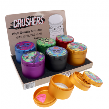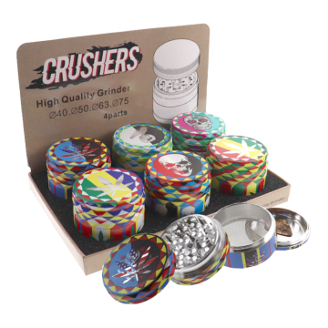 CRUSHERS 4-PIECE 63MM DESIGNED METAL HERB GRINDER 6CT/ASSORTED DISPLAY