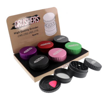 CRUSHERS 4-PIECE 63MM METAL HERB GRINDER 6CT/ASSORTED DISPLAY