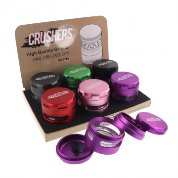 CRUSHERS 4-PIECE 75MM PAPER HOLDER METAL HERB GRINDER 6CT/DISPLAY